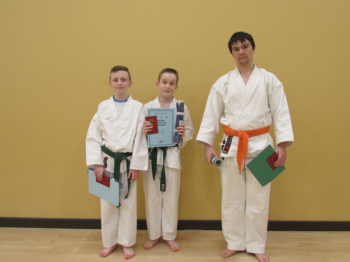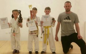 This was held at the Wigton Club on 22nd April – 50 members from 4 to 9 years, from Carlisle, Brampton, Wigton & Kendal Clubs entered with Jay Clarkson (Brampton Club, Centre) winning the Champion of Champions Trophy & the 9 years event – Aika Romanis (Carlisle Club, left) won the 6 & under event & Zac Clarkson (Brampton Club right) won the 7/8’s event. Organiser Mark Heaton 4th Dan (right) was thoroughly pleased with the support & awards were also presented to ‘most improved student’ & these went to Taylor Bowes, Wigton: Harry Kendal, Brampton: Harry Clarkson, Carlisle;